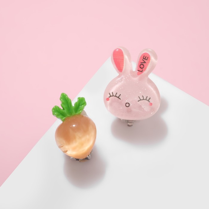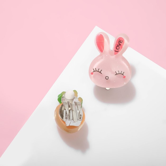 Серьги-клипсы детские «Выбражулька» зайчик с морковкой, цвет оранжево-розовый