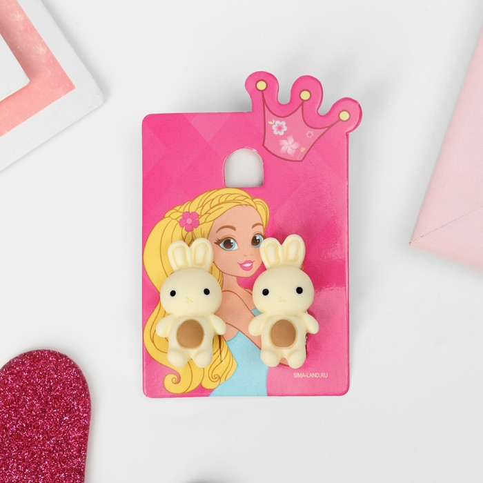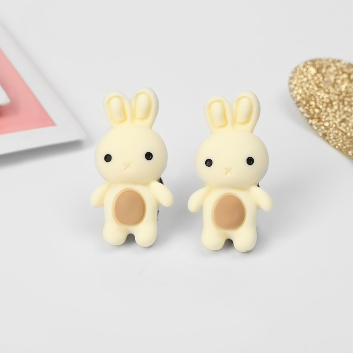Серьги-клипсы детские «Выбражулька» зайка, бежево-коричневые