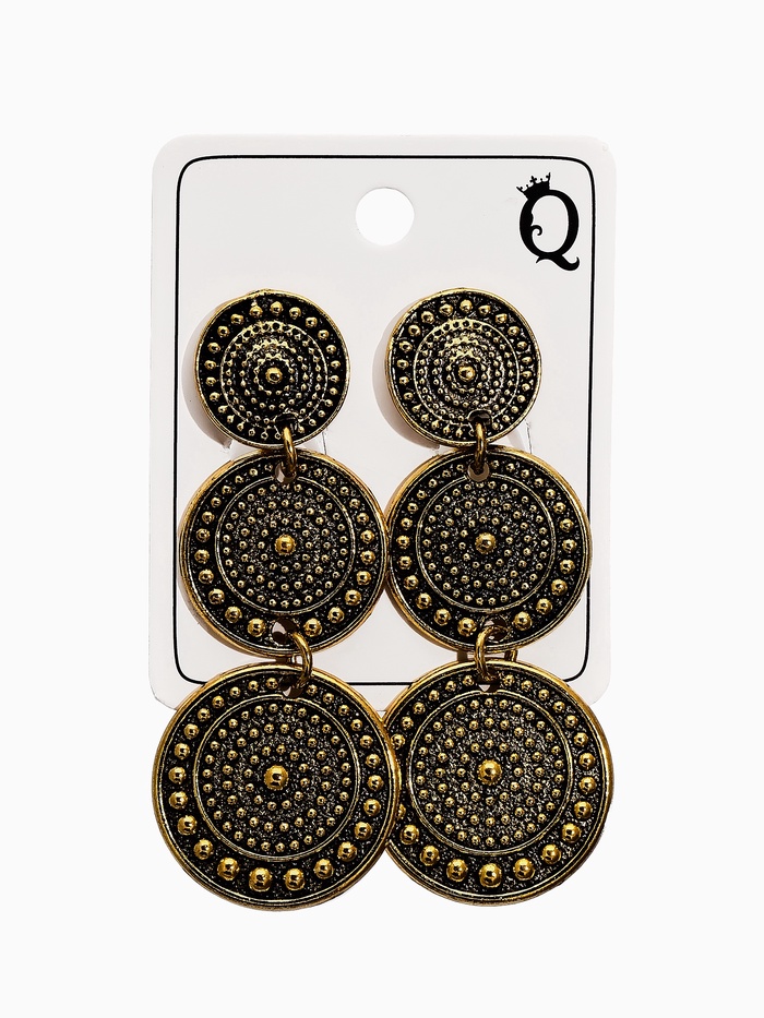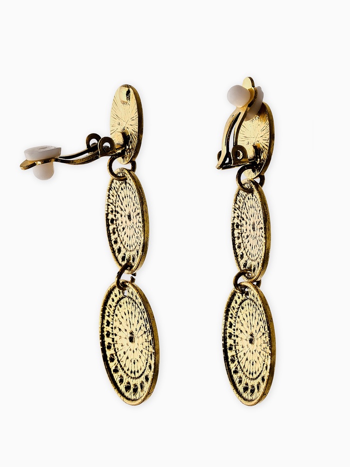 Серьги клипсы для ушей QF «Три диска», цвет чернёное золото — Характеристики