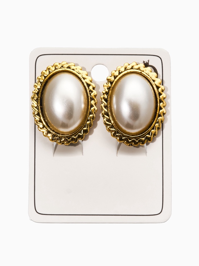 Окружите себя ароматом элегантности и благородства с восхитительными золотыми клипса-ми в жемчужном овале. Элегантные золотые контуры окаймляют полупрозрачную белоснежную пластину, создавая впечатление настоящей жемчужины, погружённой в мрак ночи.