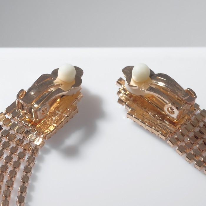 Серьги клипсы для ушей висячие со стразами QF «Вечеринка», белые в золоте