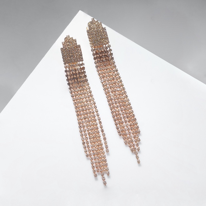 Серьги клипсы для ушей висячие со стразами QF «Вечеринка», белые в золоте — Характеристики