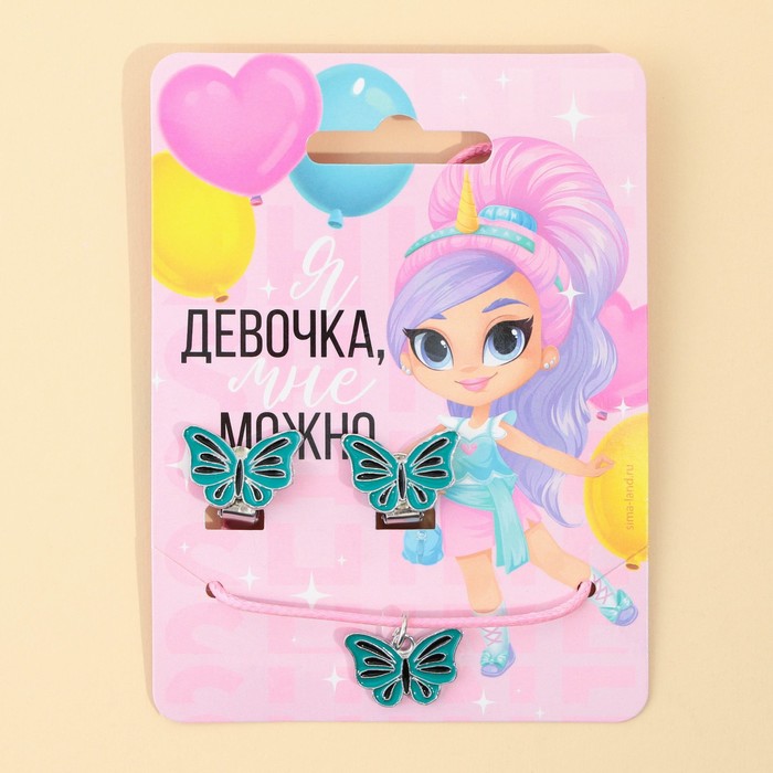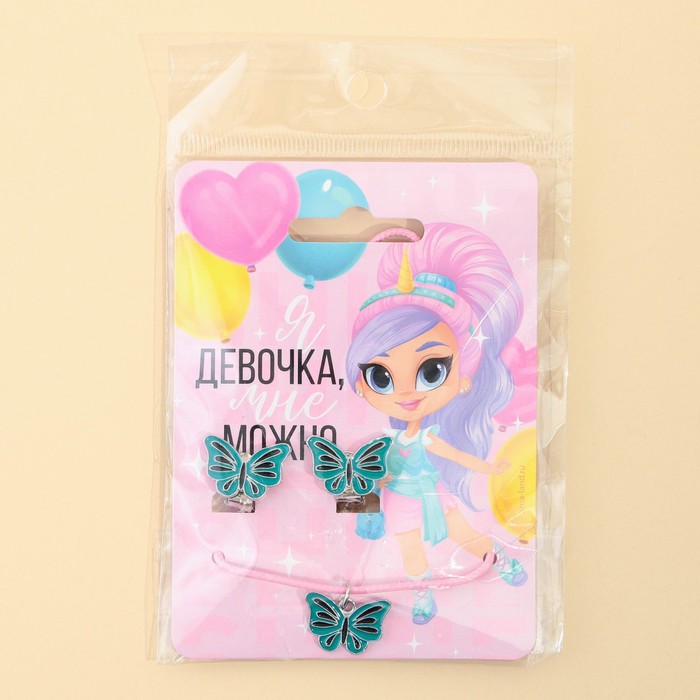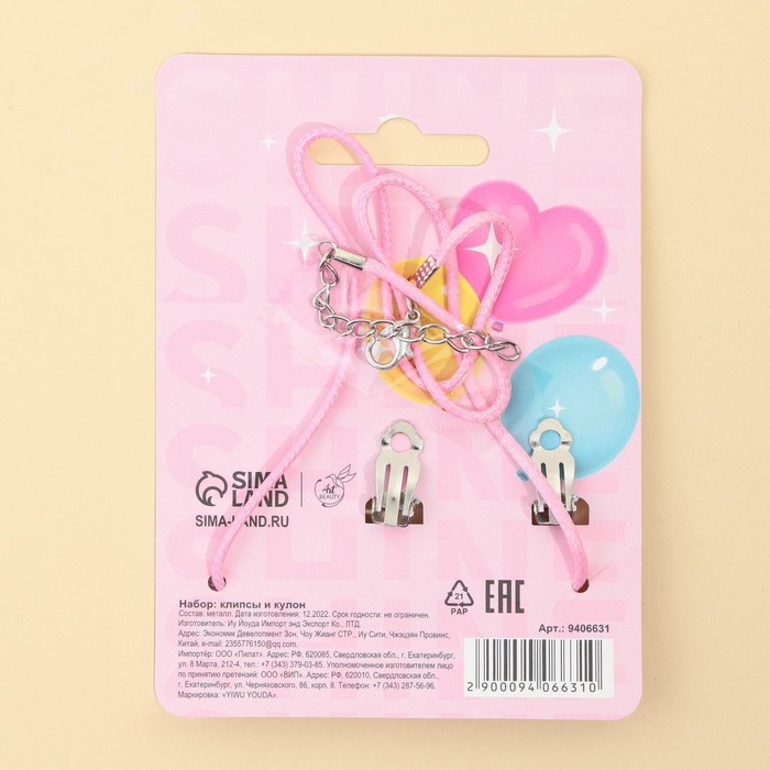 Серьги клипсы и кулон «Я девочка» набор для девочек, 8 х 9 см — Характеристики