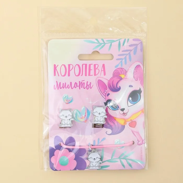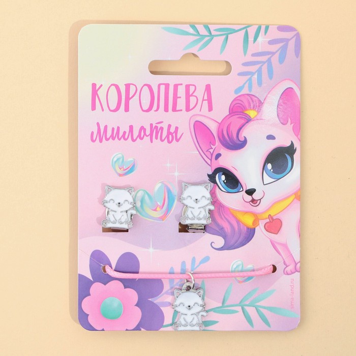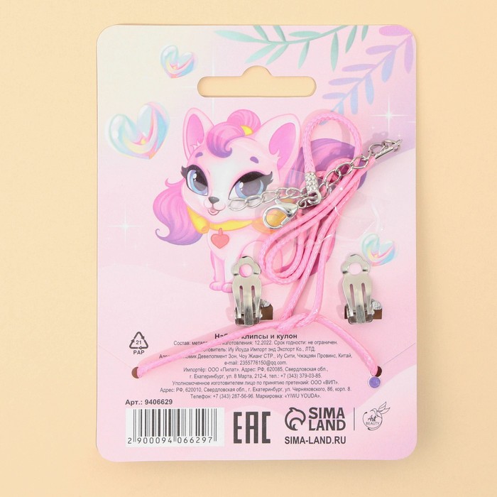 Серьги клипсы и кулон «Королева» набор для девочек, 8 х 9 см — Характеристики