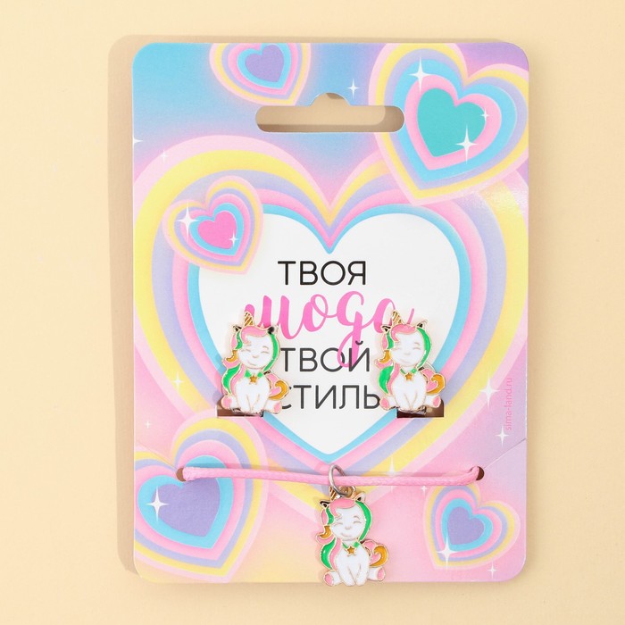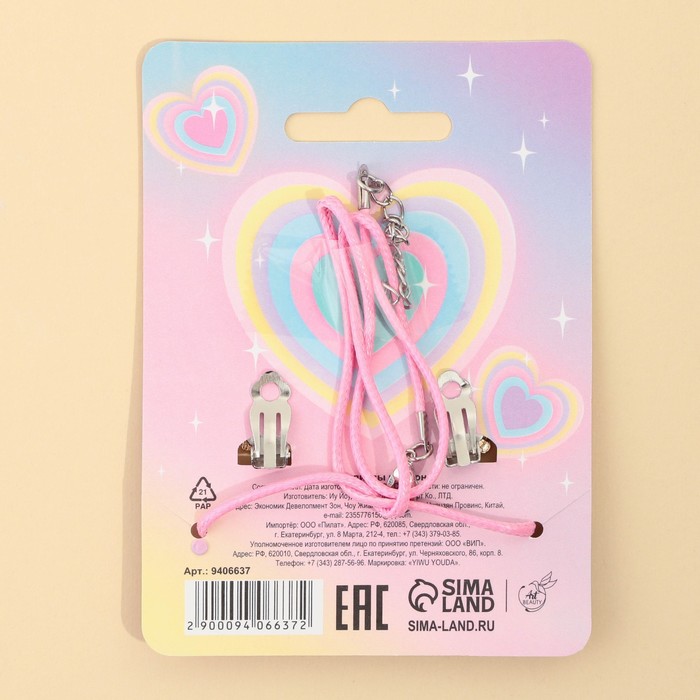 Серьги клипсы и кулон «Твой стиль» набор для девочек, 8 х 9 см — Характеристики