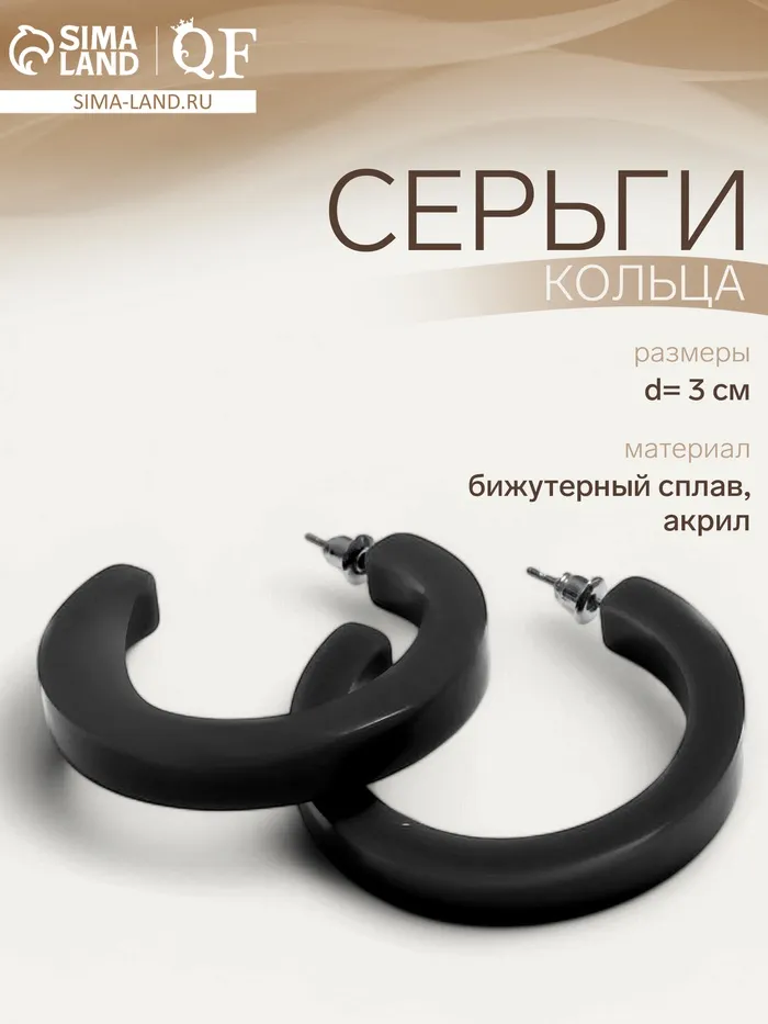 Серьги кольца акриловые QF «Дуга», d=3 см, чёрные — Характеристики