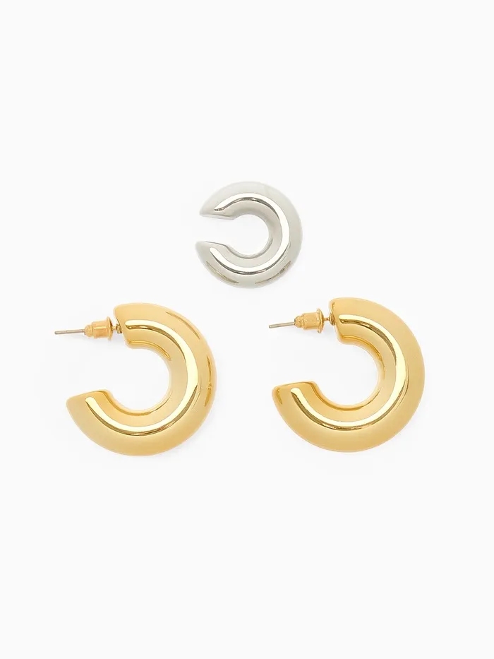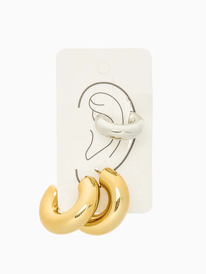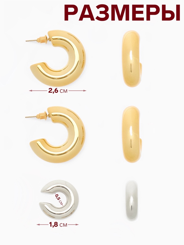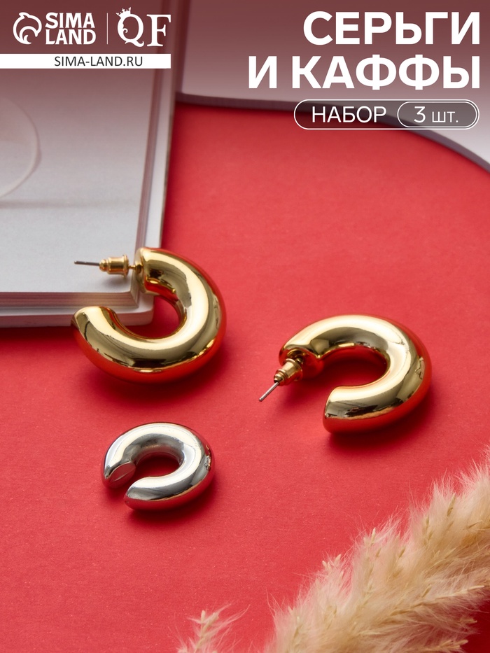 Серьги кольца и каффы QF «Бублик», набор, цвет серебро, золото — Характеристики