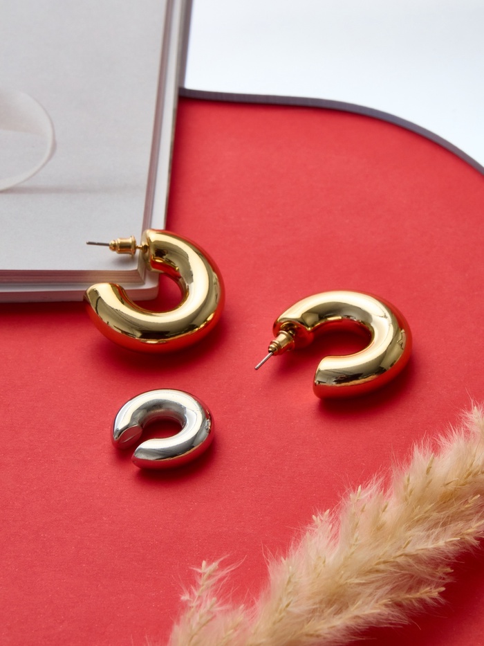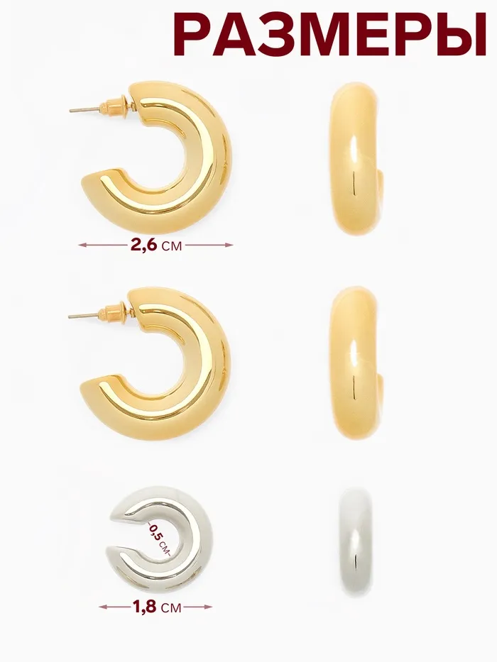 Изготовленные из надежных материалов, металл и пластик, эти аксессуары сочетают в себе как стиль, так и долговечность. Удобные застёжки-пусеты и каффы без прокола позволяют легко и комфортно носить их весь день, не беспокоясь о дискомфорте.