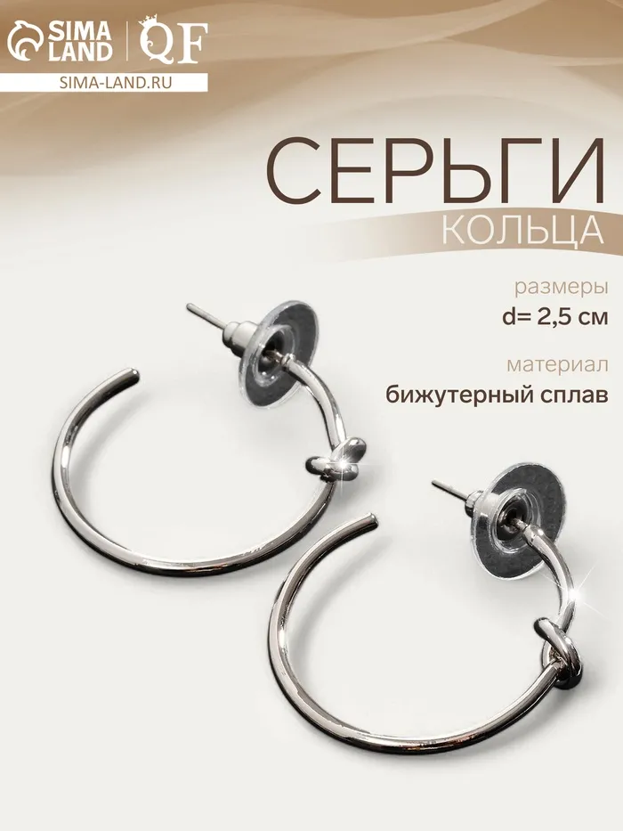 Серьги-кольца «Перерождение» классика, d=2.5 см, цвет серебро — Характеристики