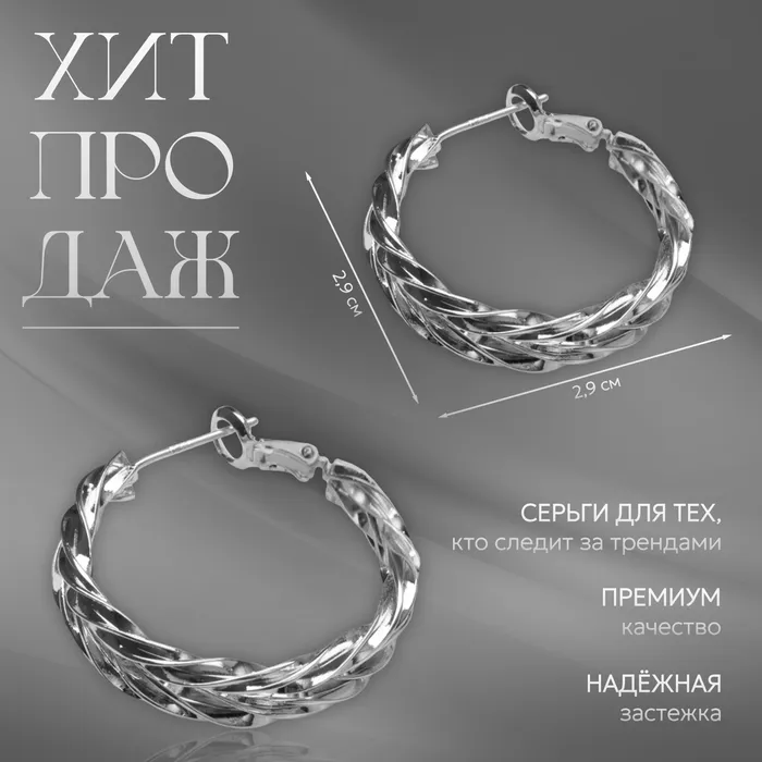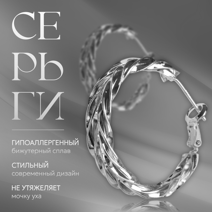 Серьги кольца плетеные QF «Богема», цвет серебро — Характеристики