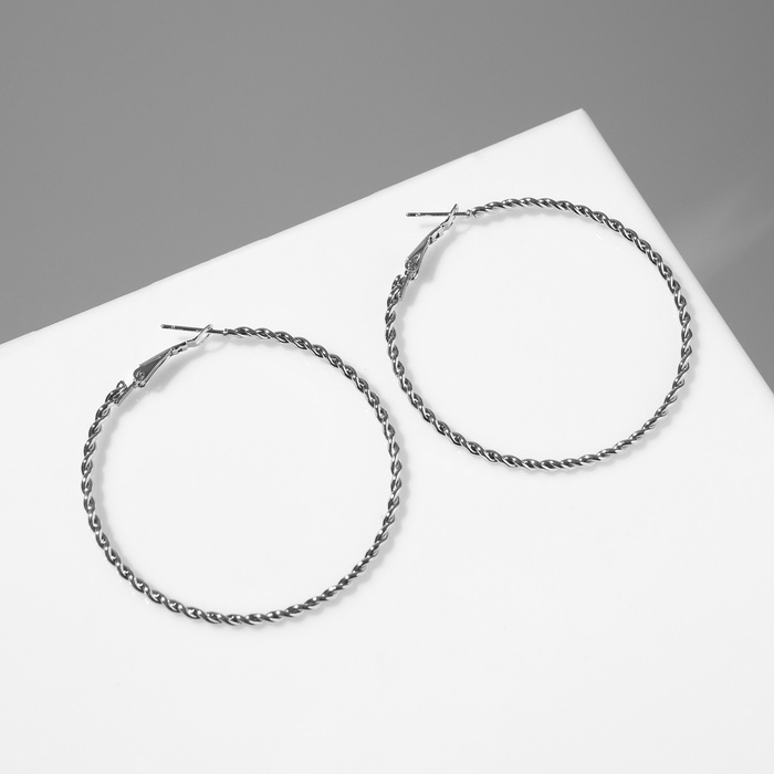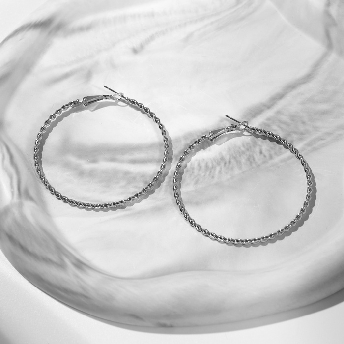 Серьги кольца плетёные QF «Крученый», d=5.5 см, цвет серебро — Характеристики