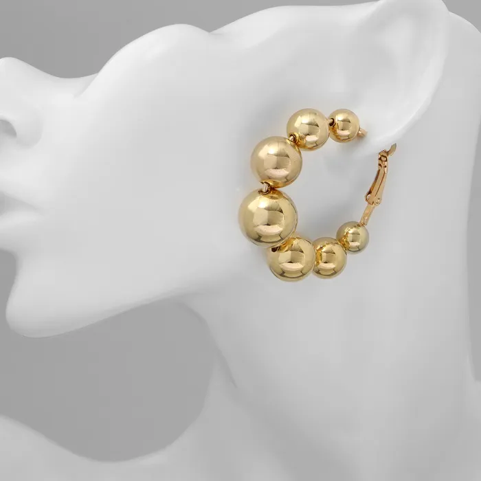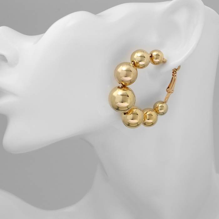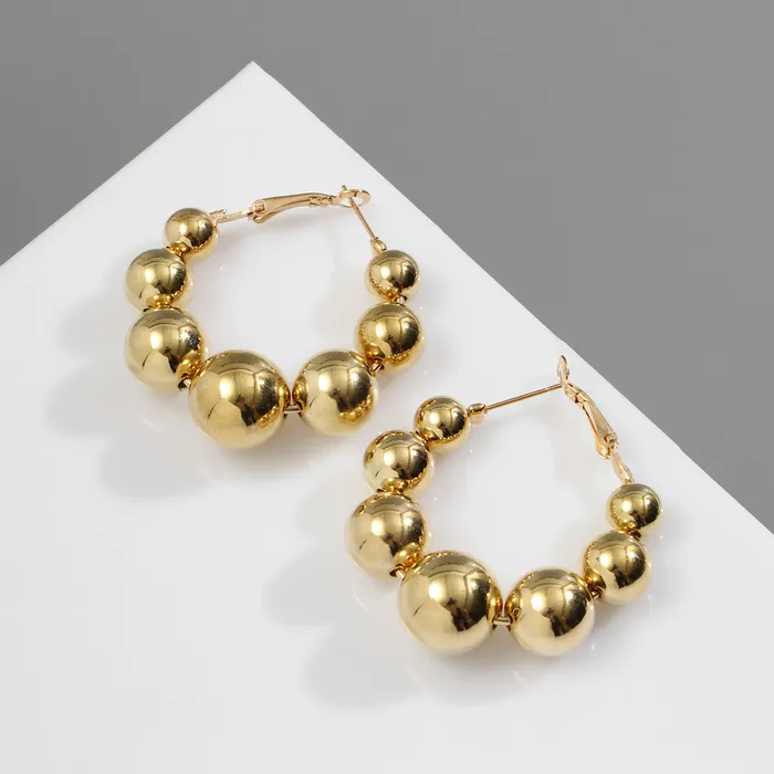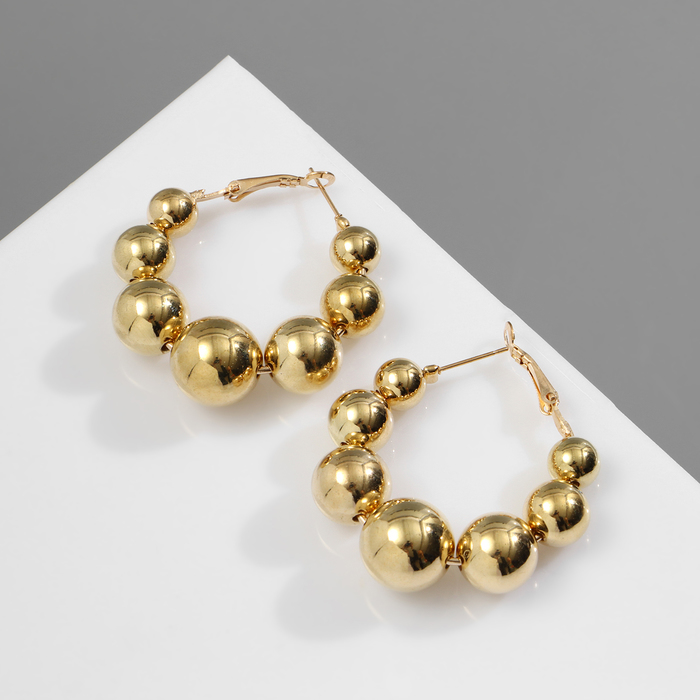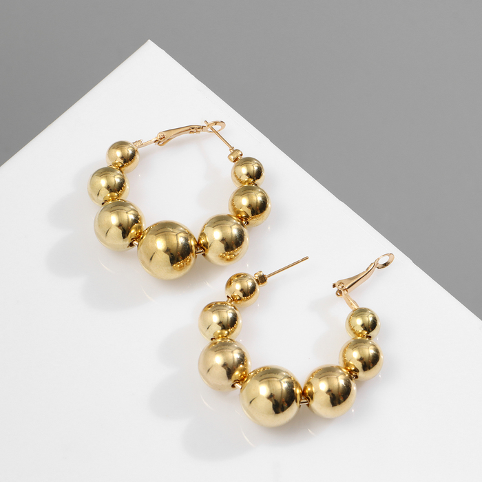 Серьги кольца QF «Бусины», на уменьшение, d=4.3 см, цвет золото — Характеристики