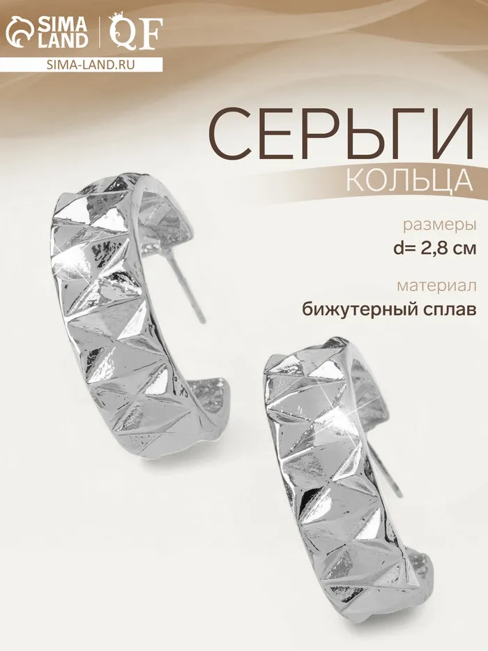 Серьги кольца QF «Геометрия», орнамент, d=2.8 см, цвет серебро — Характеристики