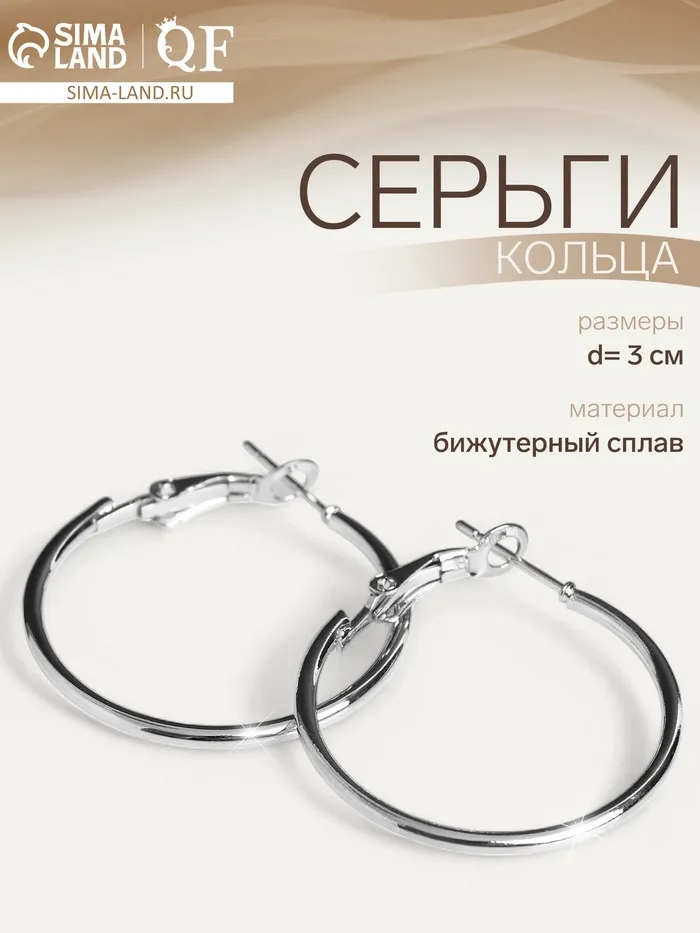 Серьги кольца QF «Классика», d=3 см, цвет серебро — Характеристики