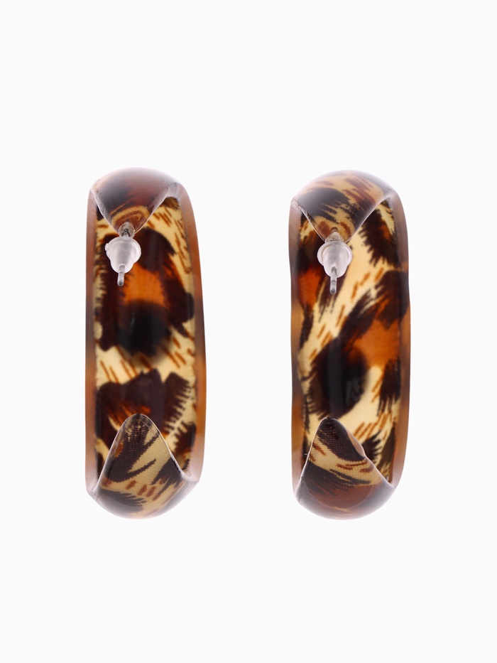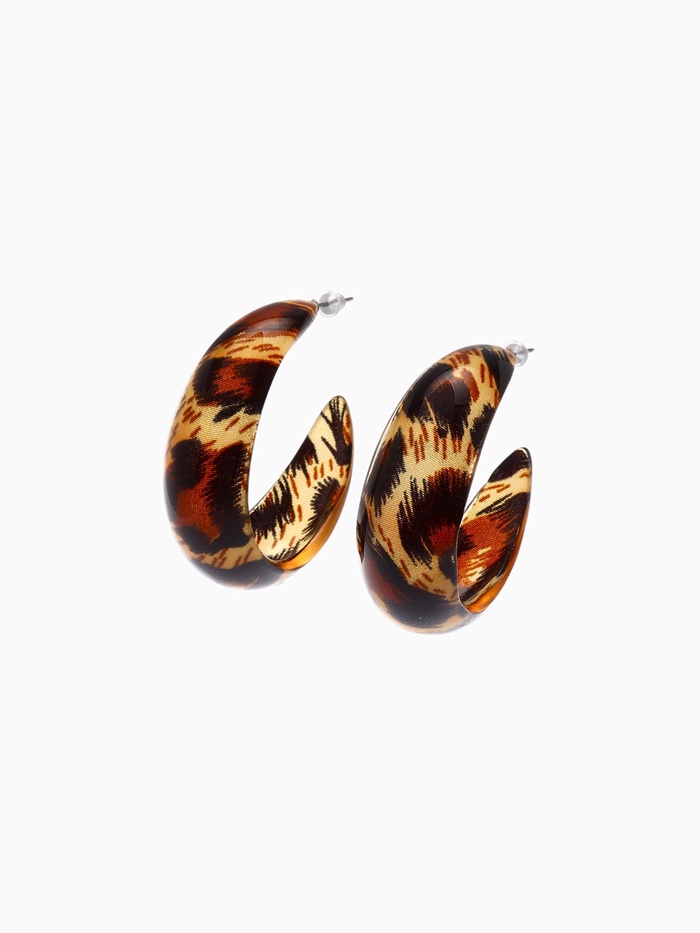 Серьги-кольца с леопардовым принтом диаметром 4,5 см — идеальный аксессуар для тех, кто ценит смелость и стиль в деталях. Металлическая основа с серебристой фурнитурой гармонично сочетается с пластиковой вставкой, выполненной в тёплых коричневых оттенках, создавая эффект живого животного узора. Такой дизайн придаёт образу яркость и динамичность, оставаясь при этом универсальным для повседневного и праздничного ношения.