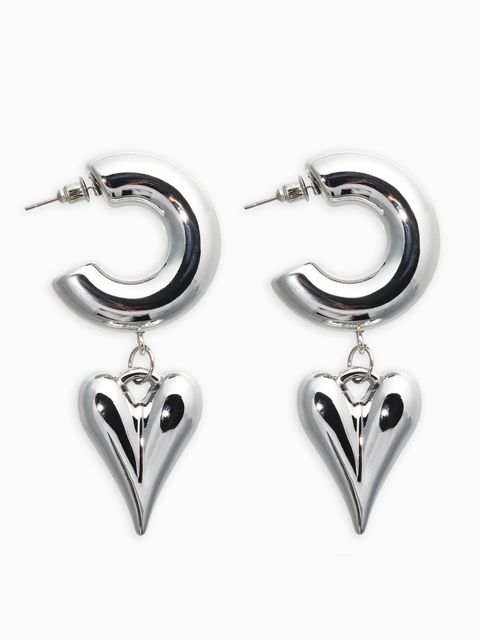 Серьги кольца с подвеской «Сердечки», d=2.5 см, цвет серебро — Характеристики