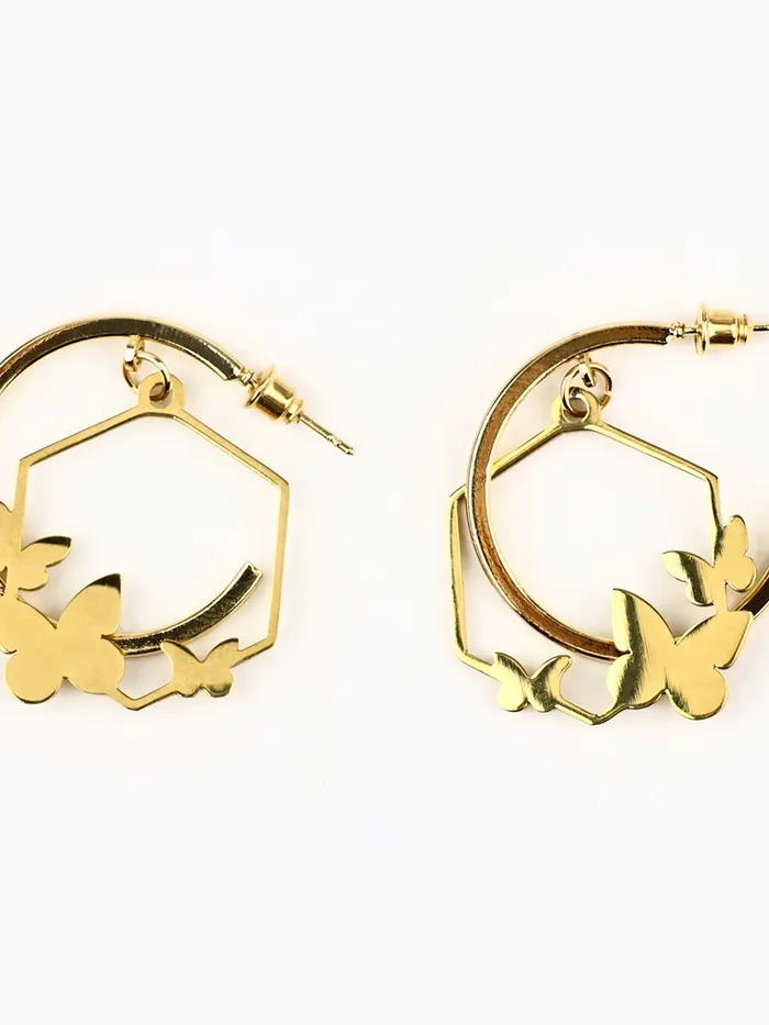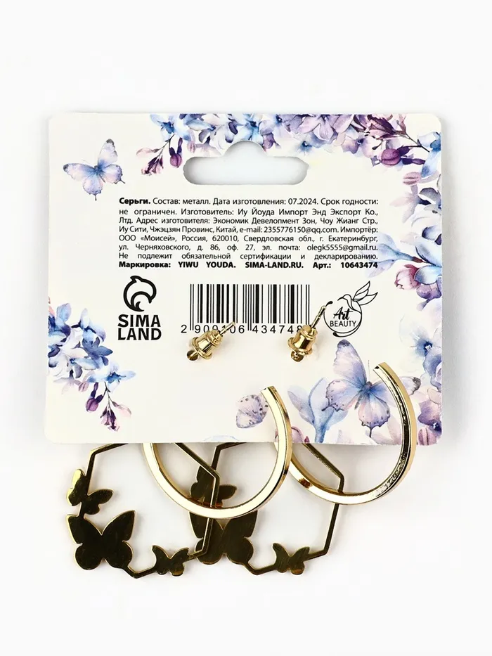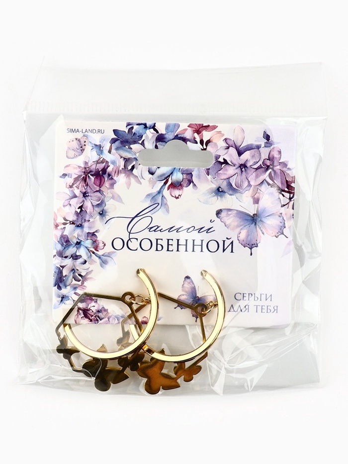 Серьги кольца с подвесом бабочками «Самой особенной», 3 см — Характеристики