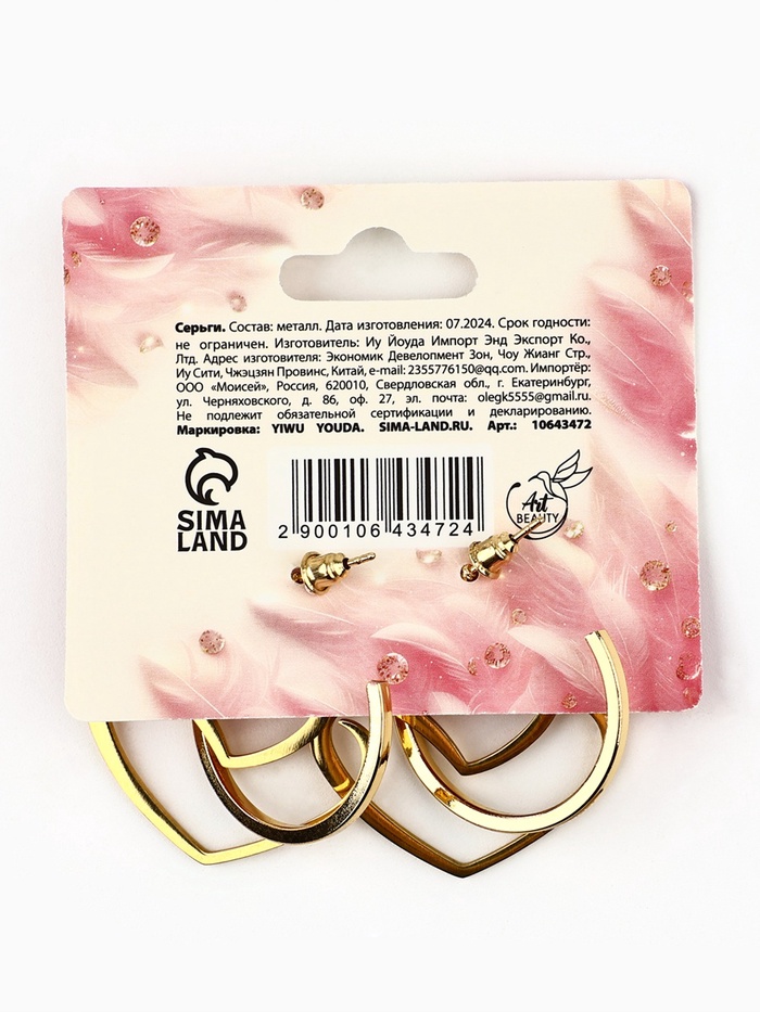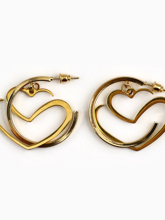 Серьги кольца с подвесом сердцем «Для нежного образа», 3 см — Характеристики