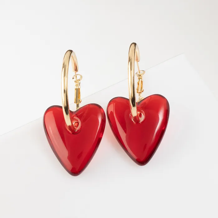 Серьги кольца с сердцем QF «Моя любовь», d=2 см, красный в золоте — Характеристики