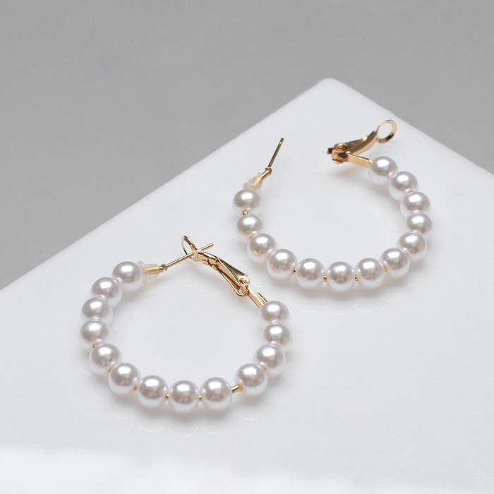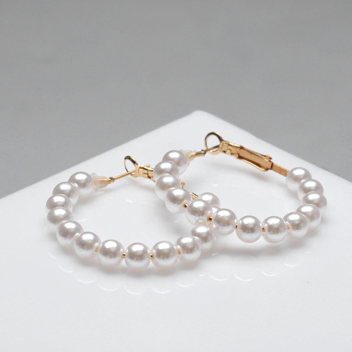 Серьги кольца с жемчугом QF «Нежность жемчуга», d=3.5 см, белые в золоте — Характеристики