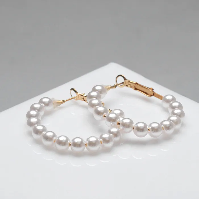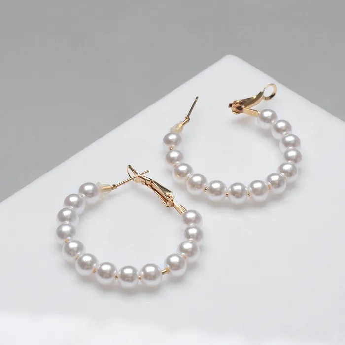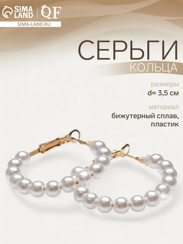 Погрузитесь в мир утонченной элегантности с роскошными серьгами-кольцами, обворожительно играющими на свету. Эти изысканные украшения диаметром 3,5 см с вставками искусственного жемчуга, обрамленные золотистой фурнитурой, привнесут нотки refinement в любой ваш outfit.