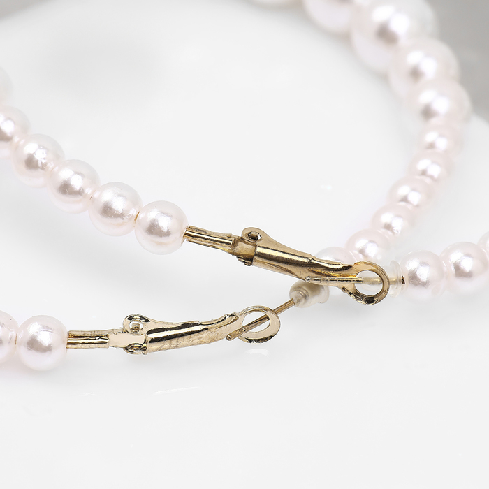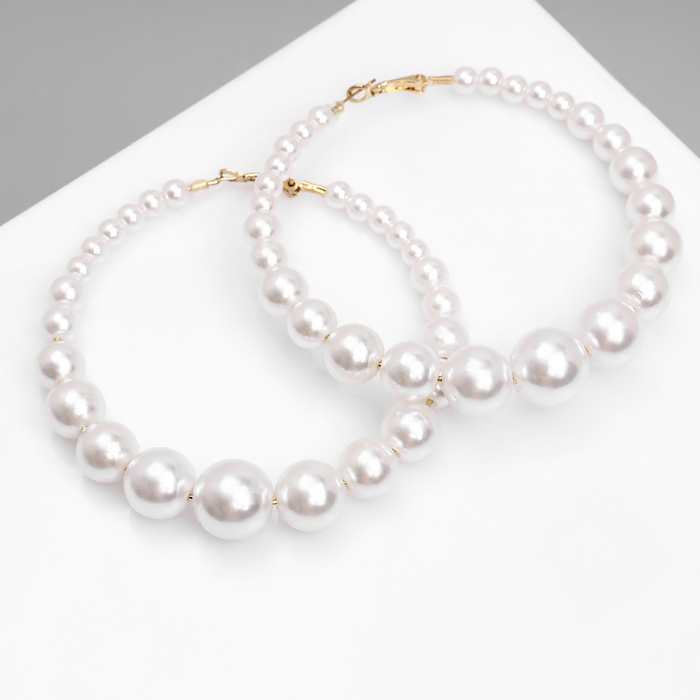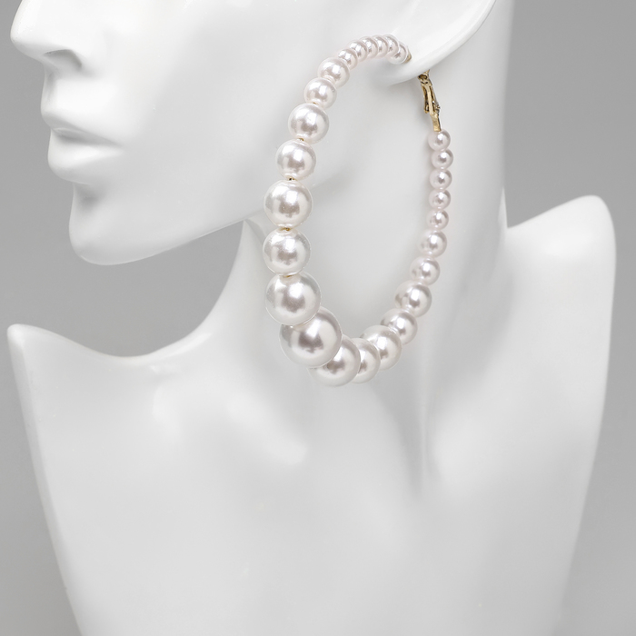 Серьги кольца с жемчугом QF «Нежность жемчуга», d=8 см, белые в золоте — Характеристики