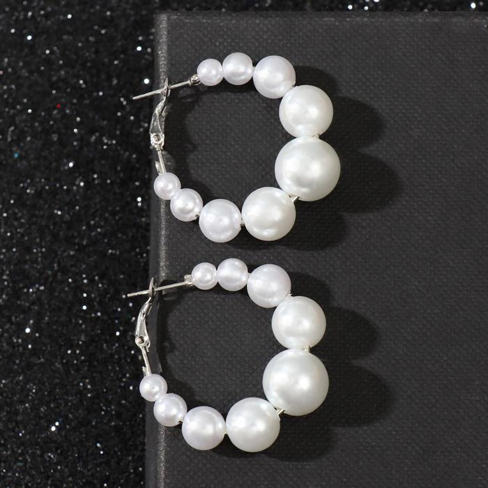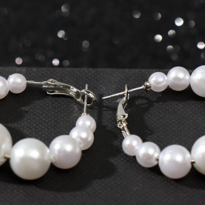 Серьги кольца с жемчугом QF «Жемчуг», маленькие, d=3.5 см, белые в серебре — Характеристики
