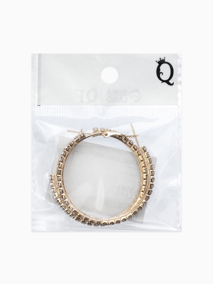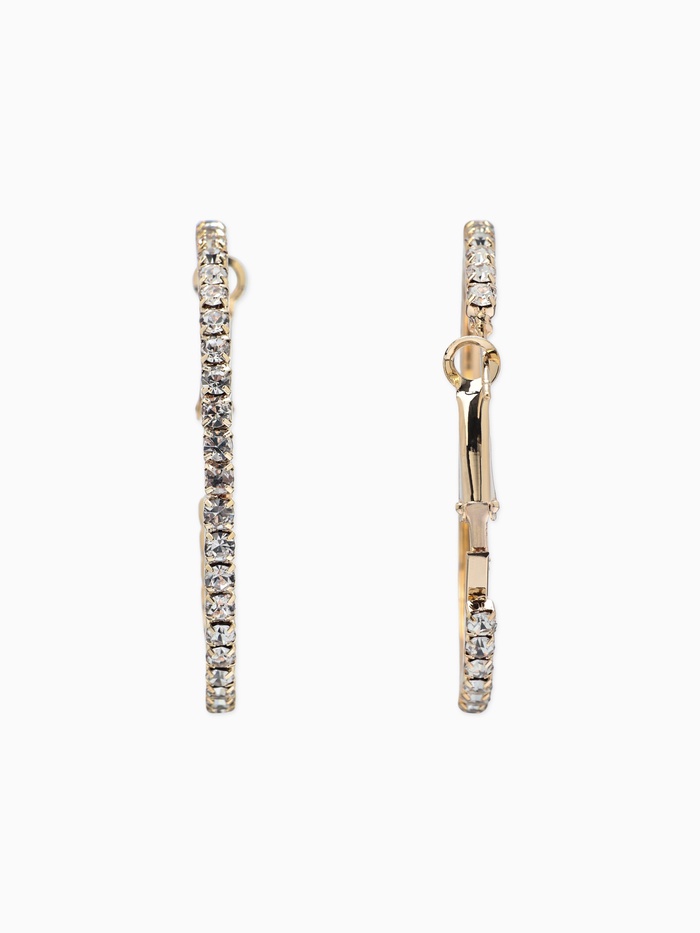 Совершенный союз формы и блеска! Кольцевидные серьги со стразами представляют собой ультрамодный аксессуар, подходящий для вечернего выхода или важного мероприятия. Кольца большого диаметра — 4,5 сантиметра — наделены невероятной энергией, способной преобразить любое событие.