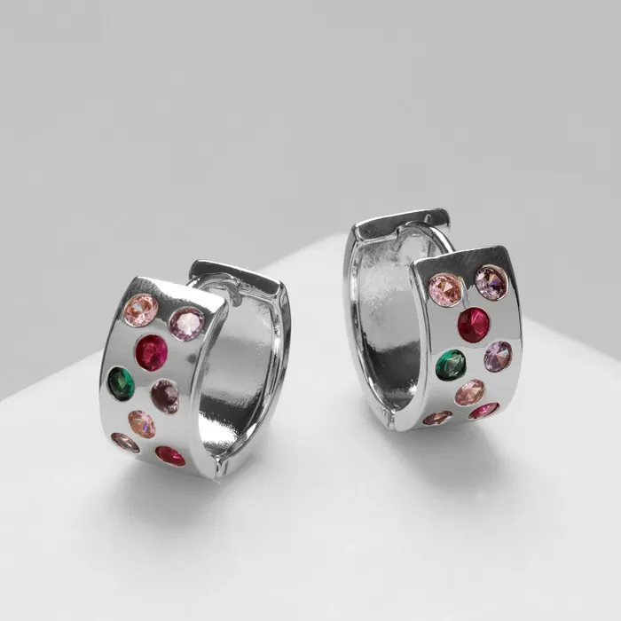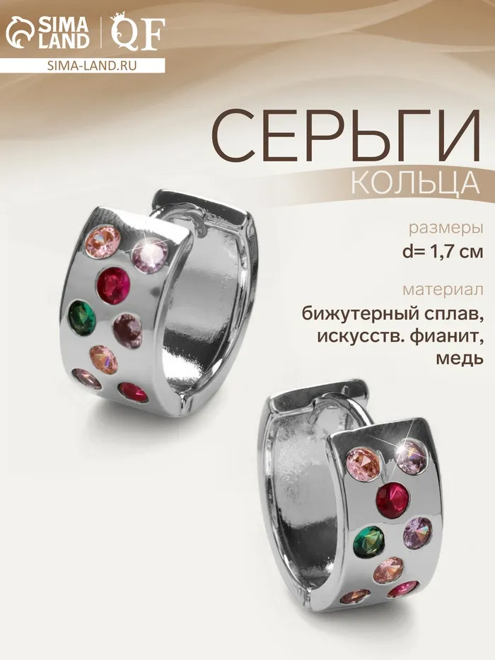 Серьги кольца со стразами QF «Искра», широкие, яркие вставки, d=1.7 см, цветные в серебре — Характеристики