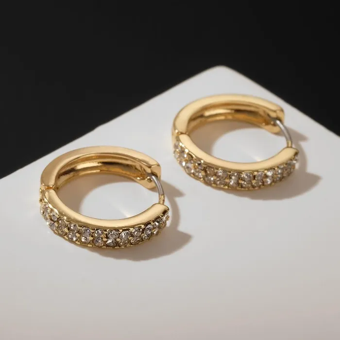 Добавьте изысканный штрих к вашему образу с этими великолепными серьгами-кольцами. С их утонченным золотистым цветом и элегантными белыми стразами они способны привлечь внимание и создать невероятный стильный акцент в любом наряде.