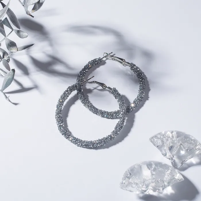 Откройте для себя шарм и элегантность с уникальными серьгами-кольцами, обрамленными блестящими стразами. Эти серьги диаметр 5 см в серебристом исполнении станут великолепным акцентом в вашем образе, добавляя нотки роскоши и стиля.