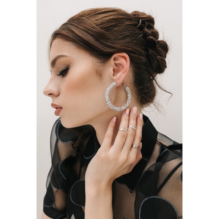 Серьги кольца со стразами QF «Шанталь», d=5, цвет серебро — Характеристики