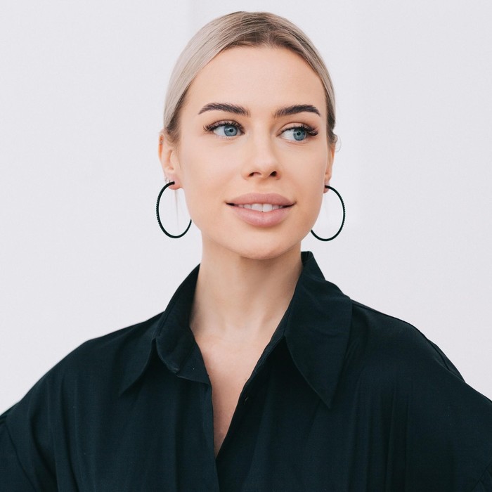 Серьги кольца со стразами QF «Сумерки», d=5 см, чёрные в серебре — Характеристики