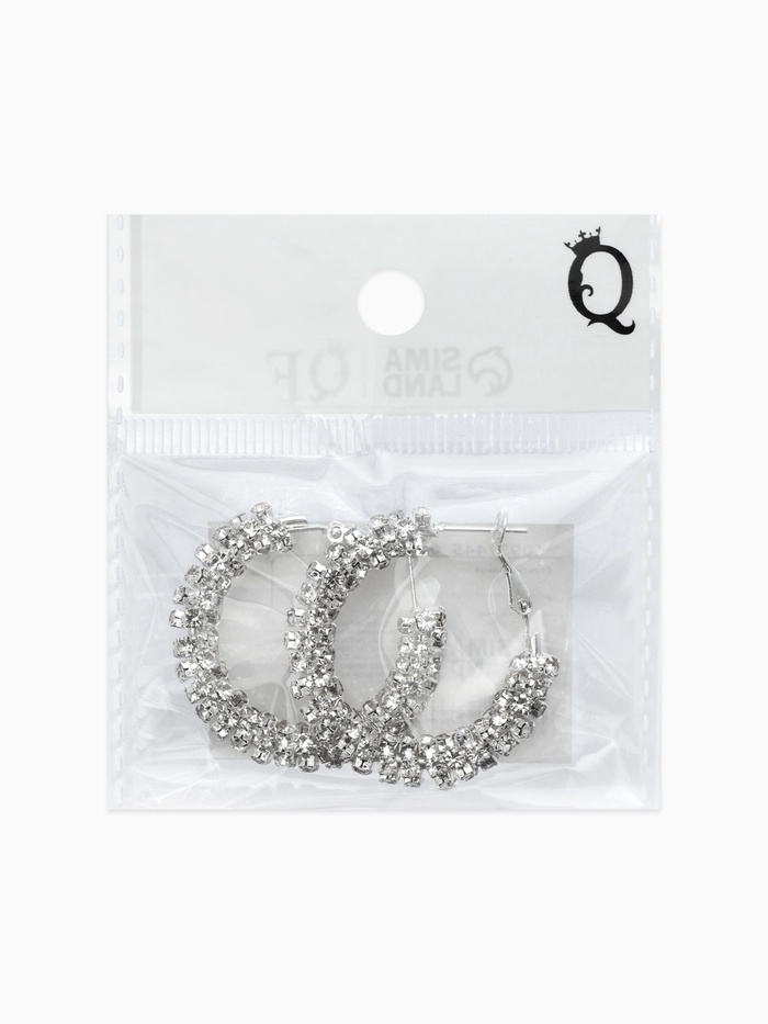 Серьги-кольца со стразами «Россыпь» d=3.5 см, белые в серебре — Характеристики