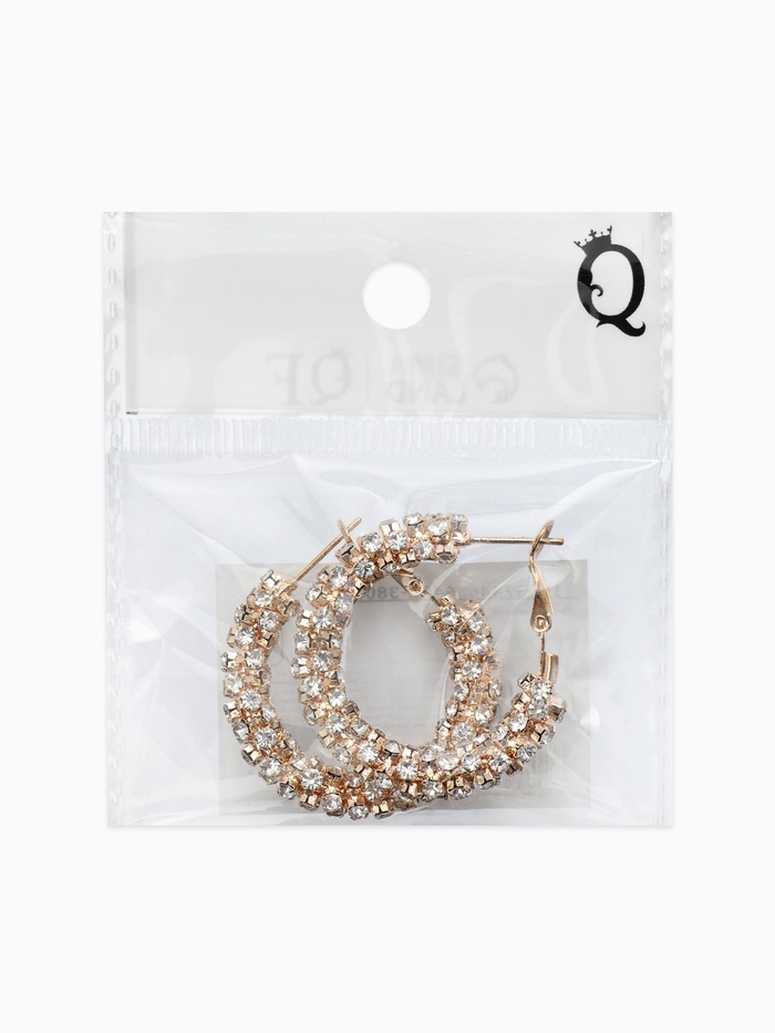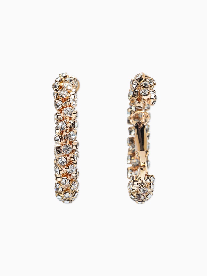 Серьги-кольца со стразами «Россыпь» d=3.5 см, белые в золоте — Характеристики