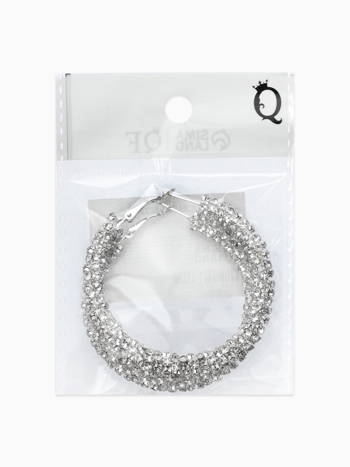 Лицо украшено снегом и льдом! Серьги-кольца «Россыпь» — прекрасное решение для элегантных дам, ценящих зимний антураж и любящих стильный блеск. Массивное кольцо диаметром пять с половиной сантиметров становится платформой для демонстрации десятков сверкающих белых стразов.