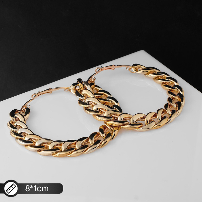 Серьги-кольца «Цепь», d=8 см, цвет золото — Характеристики