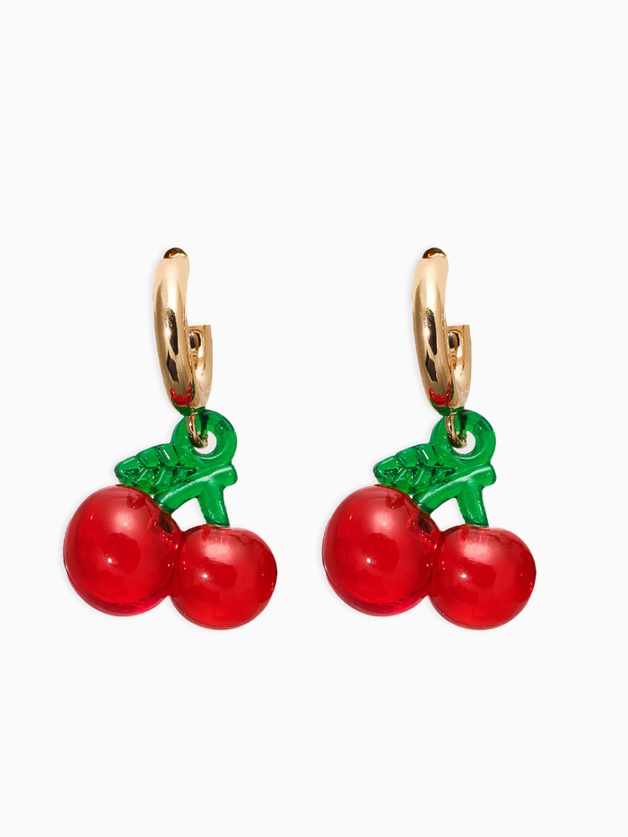 Кольца изготовлены из надежного и долговечного металла золотистого цвета, обладающего высокой износоустойчивостью и приятной теплотой восприятия. Отличительной чертой этих сережек является пластмассовая вставка в виде вишенок, расположенная в центре колец, что придает изделию особый шарм и озорной дух детства.
