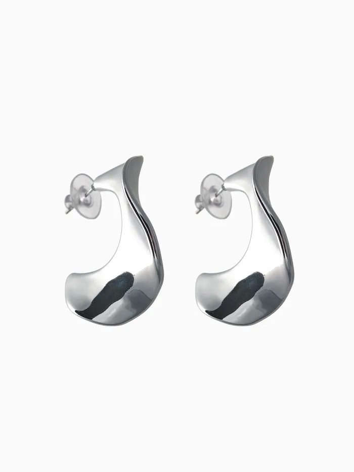 Серьги с абстрактным волнообразным дизайном в серебристом цвете представляют собой идеальное сочетание минимализма и современного стиля. Их длина 3,5 см и лёгкий пластик обеспечивают комфорт при носке, а форма колец с плавными изгибами добавляет образу динамичности и изящества.