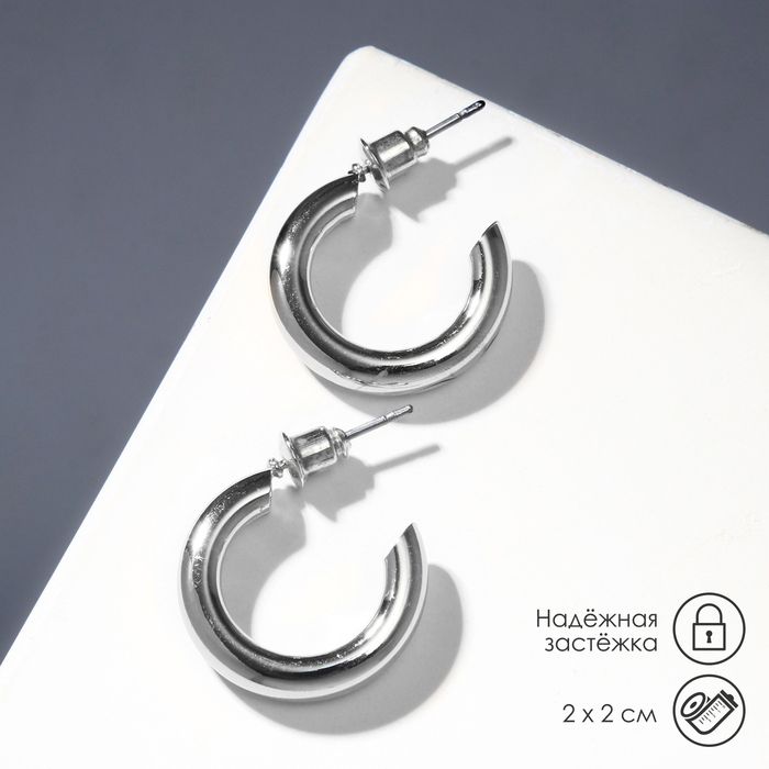 Серьги кольца QF «Линия», полукруг, цвет серебро, d=2 см