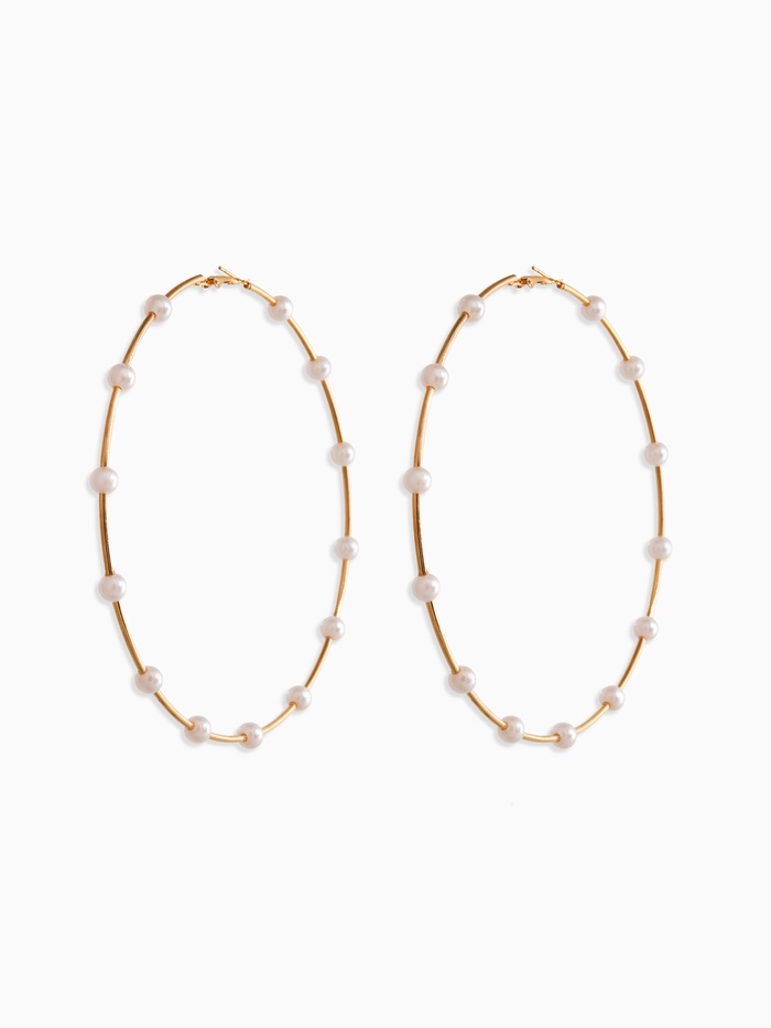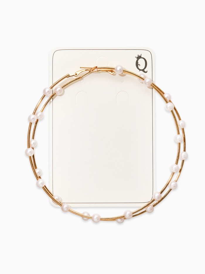 Серьги-кольца "Жемчуг" d=10см. №6, цвет белый в золоте