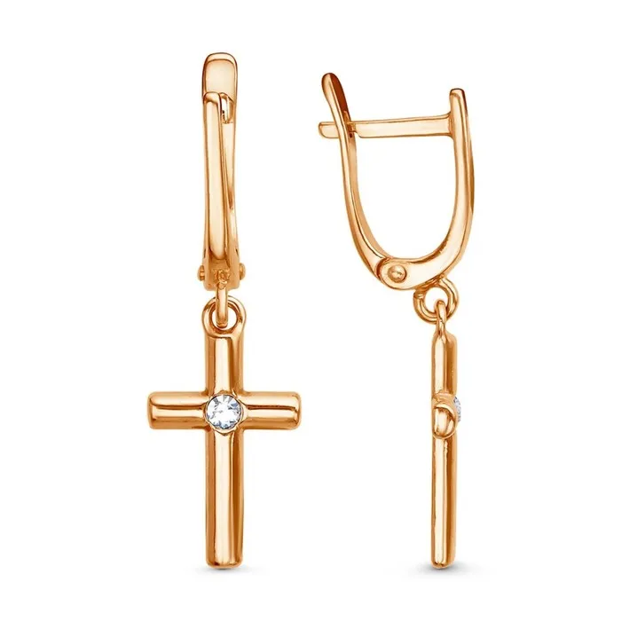 Серьги «Крестики» малые, розовое золочение, белые — Характеристики