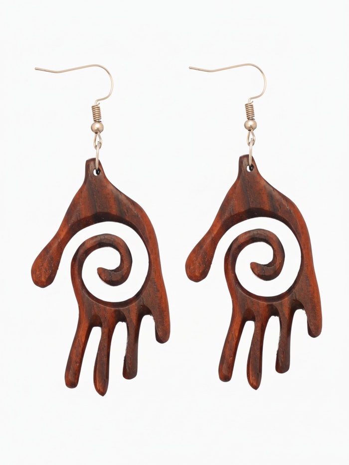 Серьги «Ладонь со спиралью», дерево соно — Характеристики