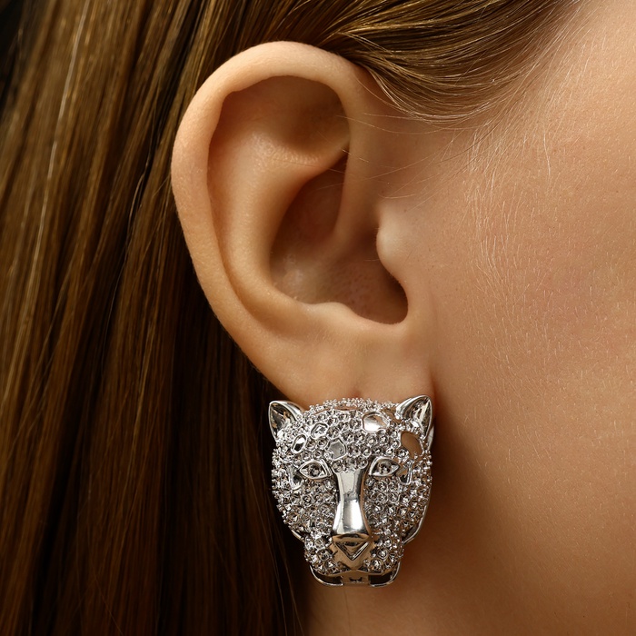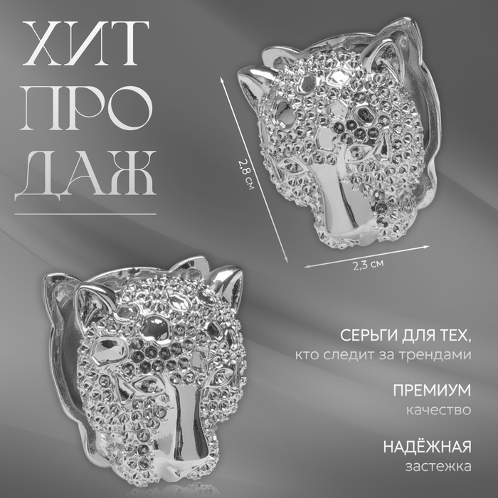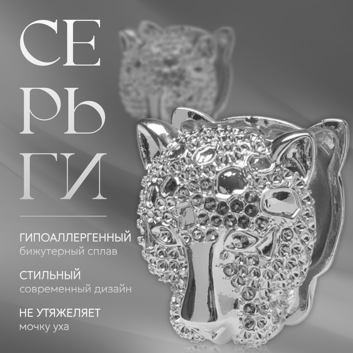 Серьги металл «Аккорд» гепард, цвет серебро — Характеристики