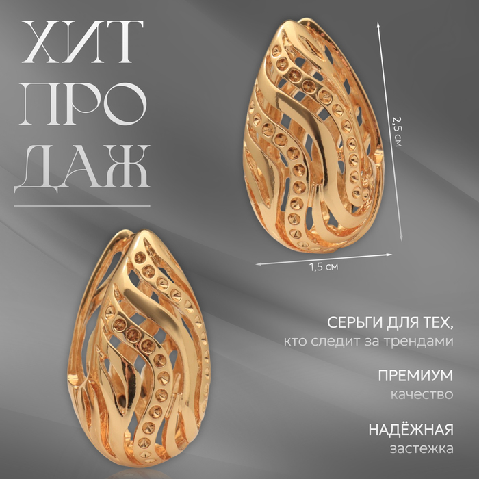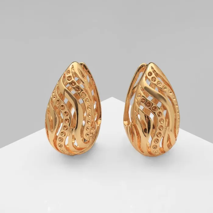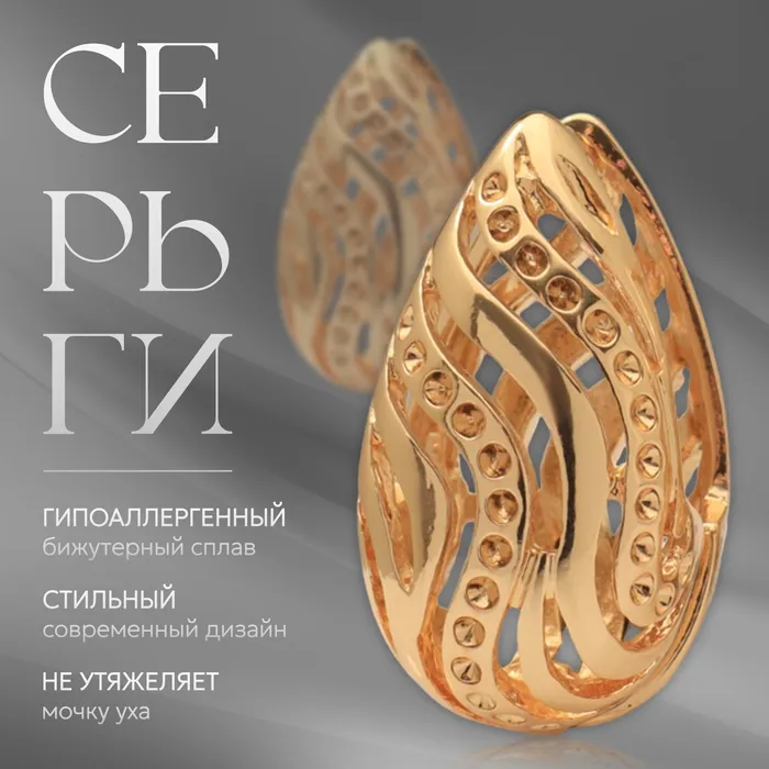 Серьги металл «Аккорд» капля с узором, цвет золото — Характеристики