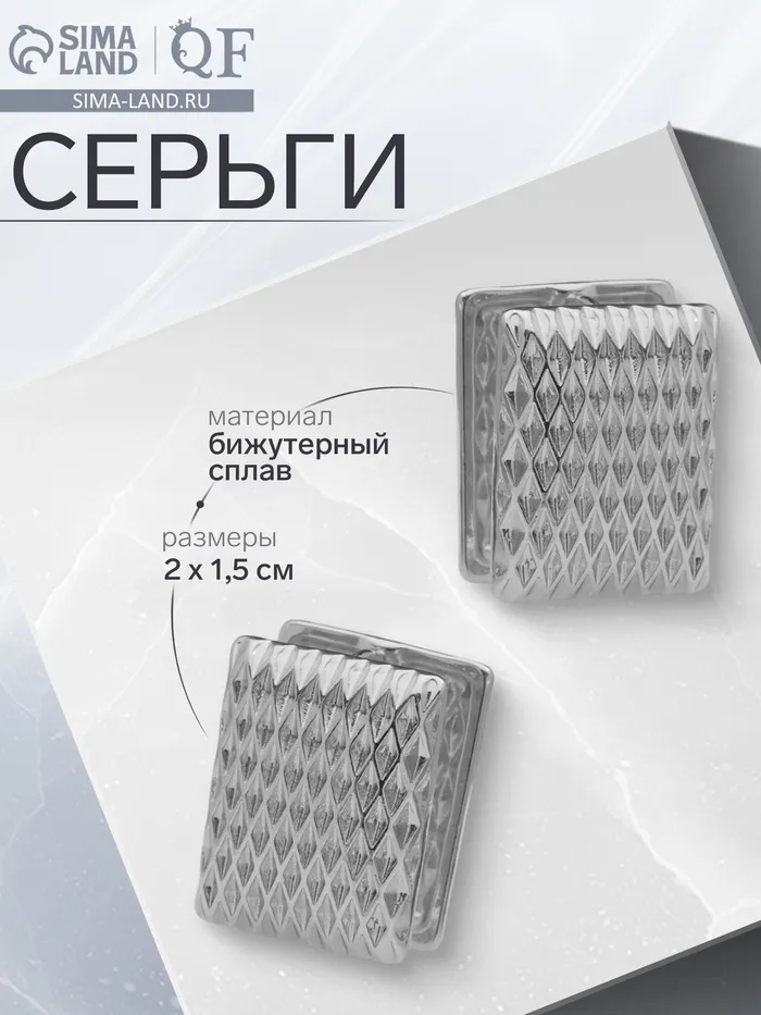 Серьги металл «Аккорд» орнамент, прямоугольник, цвет серебро — Характеристики
