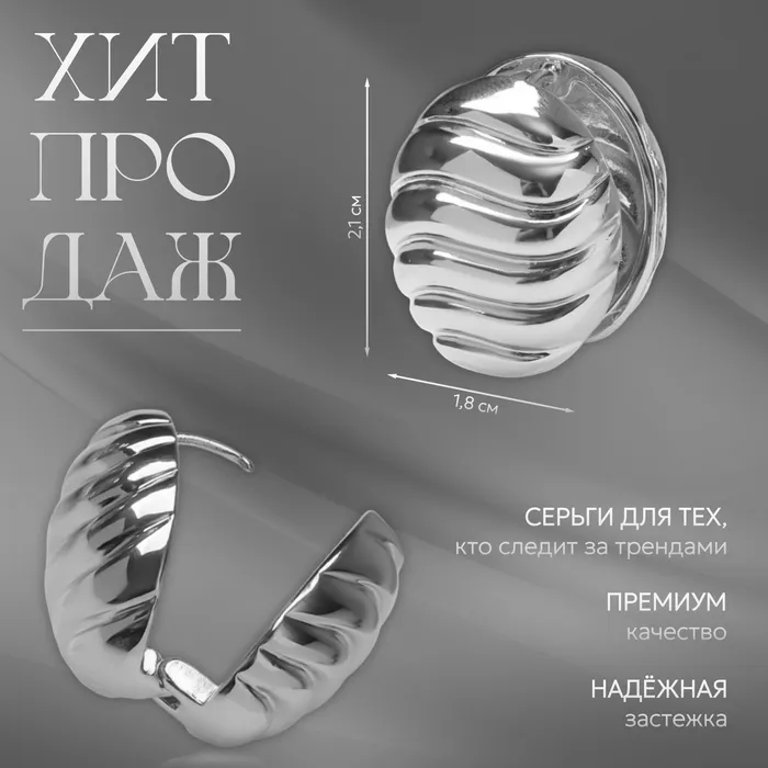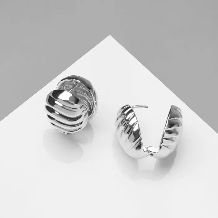 Серьги металл «Аккорд» овал, волны, цвет серебро — Характеристики