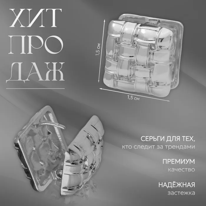 Серьги металл «Аккорд» плетение, квадрат, цвет серебро — Характеристики
