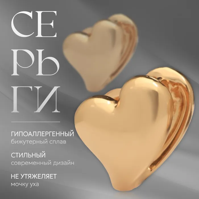 Серьги металл «Аккорд» сердечко, цвет золото — Характеристики