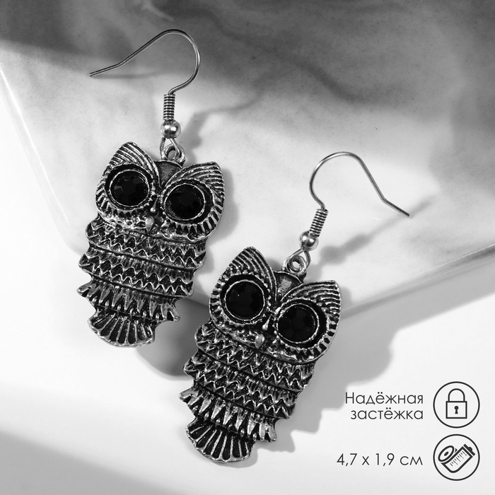 Серьги металл Art совушка, цвет чернёное серебро — Характеристики